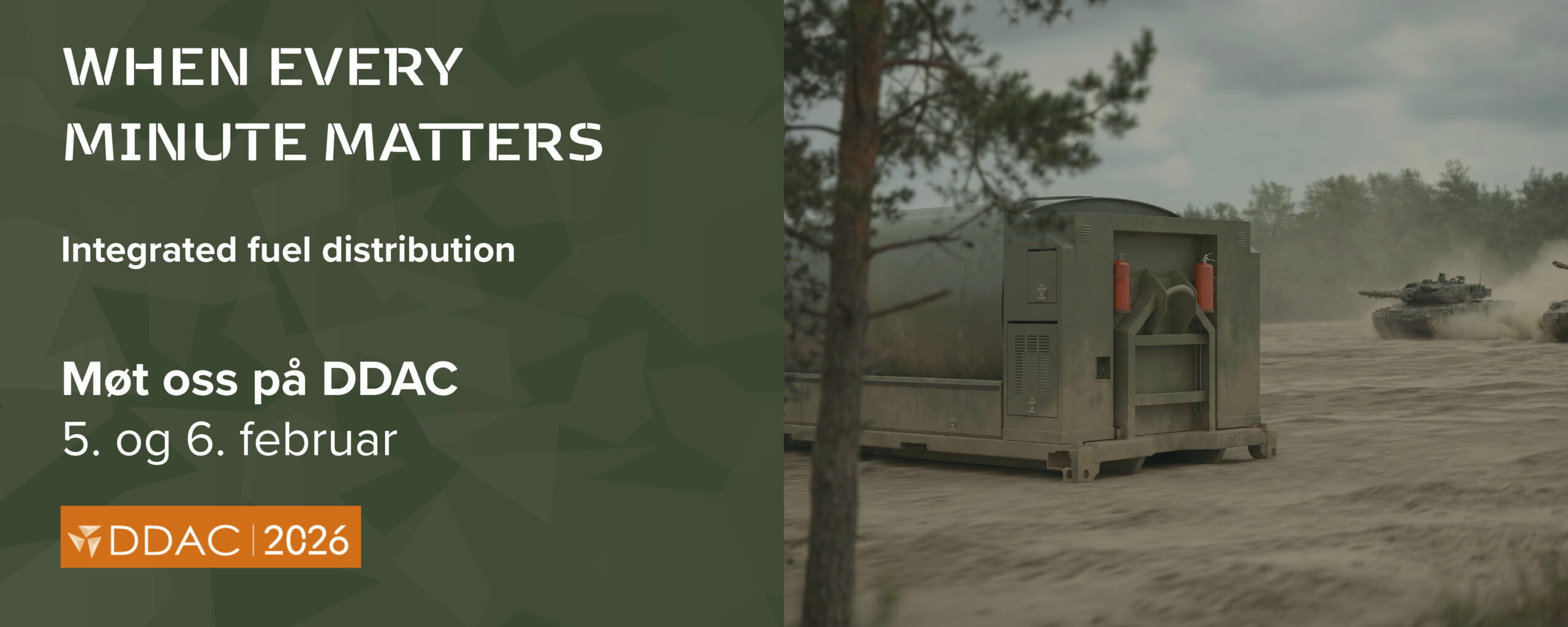 Kom og møt oss på DDAC-stand 36, balkong 2, hvor vi vil snakke om hvordan man kan redusere oppholdstid og fotavtrykk på slagmarken i omstridte miljøer med vårt klasseledende utvalg av drivstofftankbiler og containere.